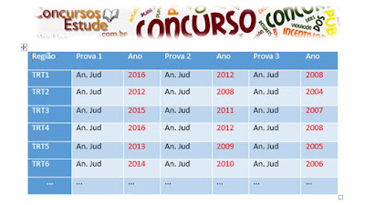 Tome o Raio-X que você obteve e o distribua nos itens, por disciplina, no edital do TRT da Região que você fará o concurso, marque quantas vezes aquele item foi cobrado em outras Regiões! Claro, primeiro organize seu edital! VEJA AQUI COMO FAZER ISSO! Agora, você terá um perfil completo do que poderá aparecer na sua prova, pois você verá claramente cada item, por disciplina, que FOI COBRADO, COMO e QUANTAS VEZES foi cobrado! Isso sim, é estratégia de estudos eficiente!